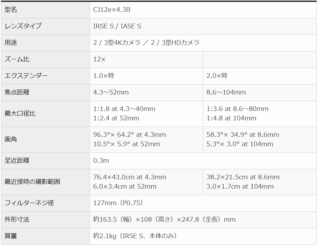| 12倍 4.3mm-52mm フォーカスサーボ装備 | |